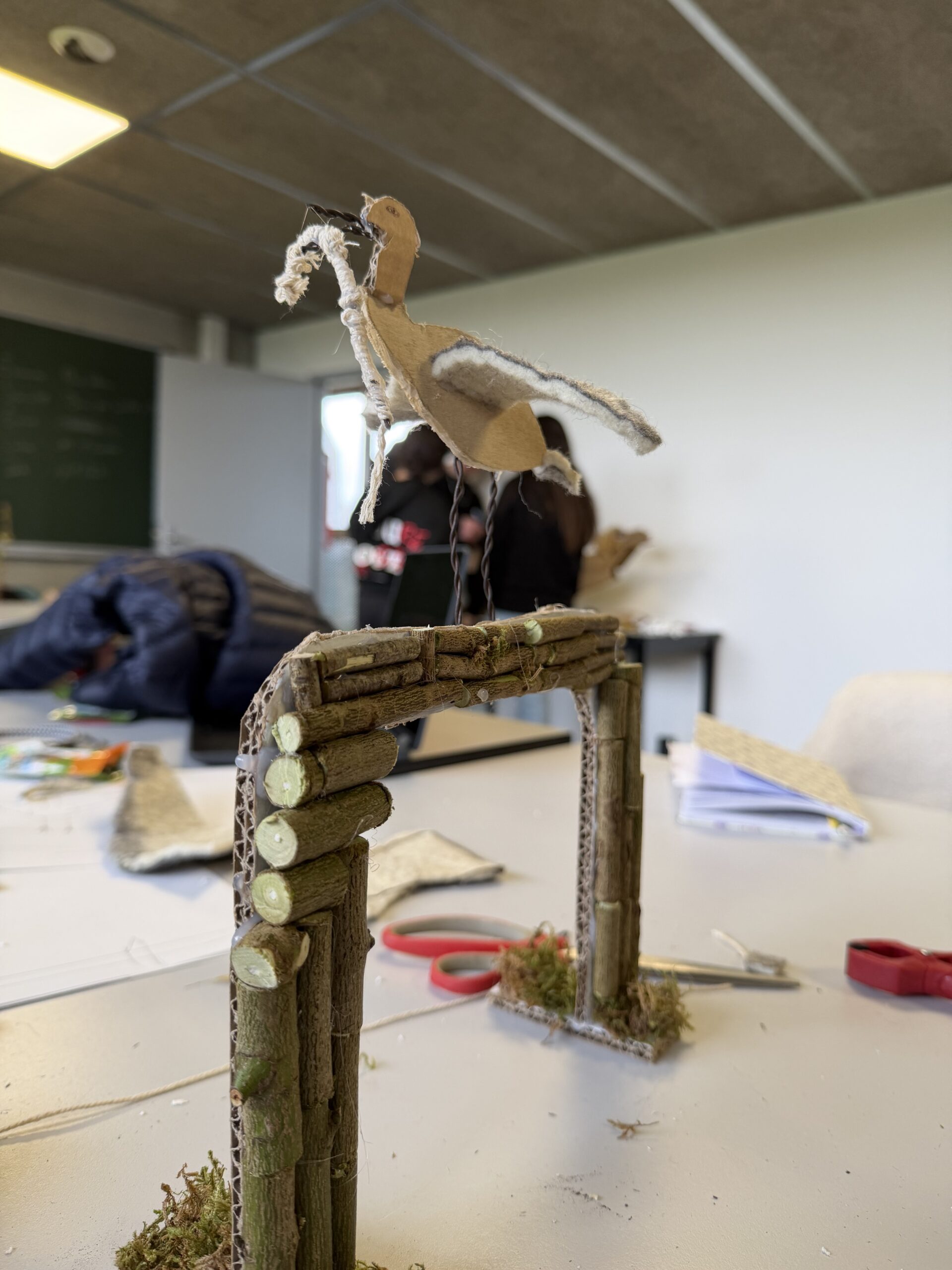 Le deuxième jour a permis de faire mûrir les idées. Accompagnés par leurs professeures d’éducation socioculturelle et les intervenants, dont l’artiste Jean-Michel Caillebotte, les élèves ont approfondi leur réflexion autour du choix des matériaux et du processus de construction. Entre essais, ajustements, changements de cap et discussions animées, l’atelier s’est transformé en un joyeux bazar créatif.